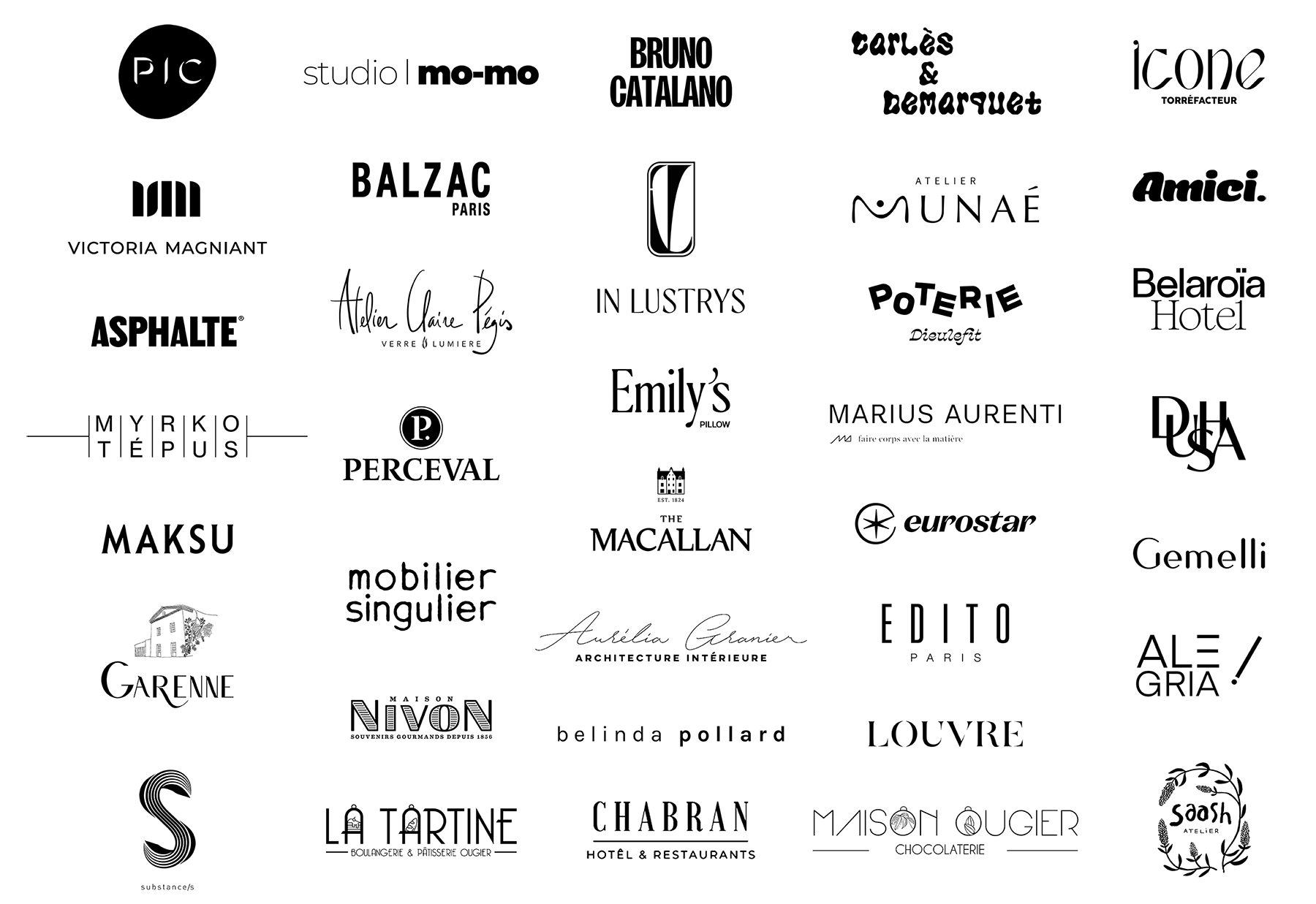 → nom, logo, charte graphique, palette chromatique, packaging